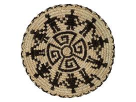 Friendship Whirlwind Tohono O'odham Basket This stunning handwoven basket by O'odham weaver Marian Cruz captures the essence of tradition and artistry. Crafted from bear grass, white and green yucca, willow, devil's claw, and red banana yucca, the Friendship Whirlwind design symbolizes connection and harmony. A remarkable piece of Tohono O'odham heritage-beautiful for display as a cultural treasure. This basket measures 10 1/4 in.