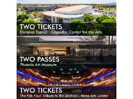 Immerse yourself in a curated collection of cultural and artistic experiences with this entertainment package. Begin with two tickets to Dorrance Dance at the Chandler Center for the Arts on Saturday, November 1, 2025 at 7:20 pm. This captivating performance blends ballet's expressive storytelling with dynamic movement and design. Then explore creativity at the Phoenix Art Museum with two single-use passes to one of Arizona's premier art destinations. Finally, relive musical history with two tickets to The Fab Four: Tribute to the Beatles at the Mesa Arts Center on Friday, November 14 at 7:30 pm. A nostalgic celebration of HELP! and timeless hits.