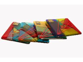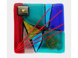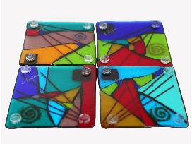 This vivid set of four multicolored hand cut fused glass coasters by Navajo artist, Dr. Carol Lujan is a brilliant addition to your home decor. Each coaster measures 4 x 4 inches.