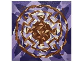 O'odham artist Dwayne Manuel reinterprets the traditional O'odham basket shield design through a modern abstract aesthetic. Fragmented into angular sections of purples and neutral browns, the work bridges cultural tradition with cubist and abstract expressionist styles. A powerful blend of ancestral symbolism and contemporary artistry.