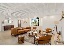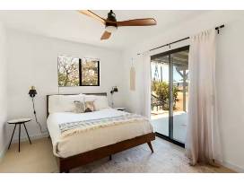 The entire villa has been uniquely remodeled with a clean and contemporary feeling while preserving 1950's vibe. Enjoy the vintage beams with midcentury ceiling, Tastefully furnished with modern vintage pieces and local artwork. The home is fully private. The kitchen window looks out onto the pool and the forest of trees and is equipped with all the necessary cooking supplies and new appliances. Electric stove, refrigerator, microwave and coffee machine . The outdoor dining table is suitable to seat 8 people.