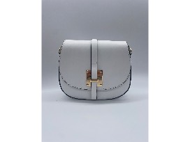 White leather GermÄn Fuentes saddle bag with gold accents from Effie's Homewood.