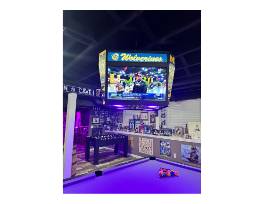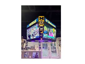 Take your sports room or man cave to the next level with this officially licensed University of Michigan small-scale Jumbotron! Designed for the ultimate Wolverines fan, this one-of-a-kind showstopper proudly features Michigan throughout. Measuring 30" x 30" and weighing under 35 pounds, it comes fully functional with wireless streaming, plug-and-play capability, and 4 working TVs that mirror the same content simultaneously. The top and bottom lights are fully programmable with over a million color options and can be controlled via Alexa for the ultimate game-day experience. Don't miss out on this incredible centerpiece, which is perfect for displaying your Maize and Blue pride! Please note: This item cannot be shipped.