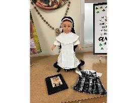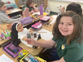 Meet Sister Rose Patrick! She is a Saint Patrick Alumni, which you can tell by her school uniform, but she discerned a vocation to the sisters and is now a Dominican Sister of Saint Cecilia. Her 3rd grade friends helped her sew her habit with the help of their teacher (she is also a Dominican Sister!). Before she left for the convent, the 3rd grade made her a scrapbook to take with her so that she would never forget Saint Patrick and the adventure God sent her on when he called her to the convent!