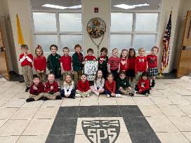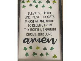 The first prayer learned in PreK, this prayer is decorated with shamrocks made with the thumbprints of the PreK-4-year-old class.