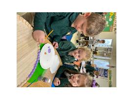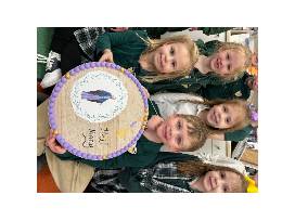 Created by the Kindergarten with their signatures on the back, this stunning rosary art is a wonderful addition to any home.
