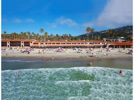 The hotel features championship tennis, par-3 golf, massage services, heated outdoor pool and one of the only private beaches in Southern California.