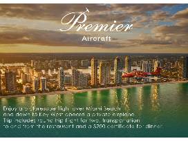 Premier Flight to the Keys and lunch and back. Enjoy a picturesque flight over Miami Beach and down to Key West aboard a private airplane. Trip includes round trip for two, transportation to and from the restaurant an $200 certificate for lunch or dinner credit.