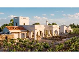 Nestled in a 55-acre vineyard, Cavas Wine Lodge is strategically placed between the best-known Argentinian wineries and the magnificent Andes Mountains. Two couples will enjoy this beautiful resort located just 30 minutes from Mendoza in the heart of Argentina's wine country. With over 900 wineries positioned throughout the foothills of the Andes, the wine route that runs through Mendoza is one of the most charming, variety-rich, and visually stunning in the world. At the foot of the Andes, Cecilia Diaz Chuit and Martin Rial have created a splendid hotel, built in Spanish colonial style, and devoted to the joys of wine.