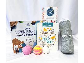 Gift Basket - Blanket, Vision Board Kit, Prayer Journal, Meditative Journal, and 3 Lush Bath Bombs