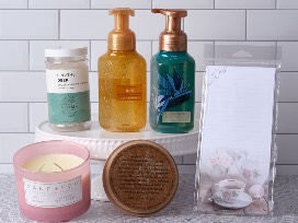 Unwind and indulge with this perfect blend of relaxation and luxury! Keep your drinks cold (or hot!) with a Yeti Rambler 30 oz tumbler and store all your essentials in the sleek Yeti bag. Enjoy a spa-like experience with Bath & Body Works Breathe Deep Eucalyptus & Lavender shower steamers, and keep your hands refreshed with Turquoise Water and Leaves hand soaps. Stay organized with a magnetic notepad, while savoring Harry & David chocolate wafer rolls. Sip on the exceptional Dr. Konstantin Frank 2023 Dry Rosé wine, and cozy up in the warmth of a Sunbeam Microplush Sherpa Heated throw. For an extra touch of elegance, the Geominimalist charm bracelet adds a perfect finishing touch. The ultimate gift for anyone who loves relaxation and luxury!