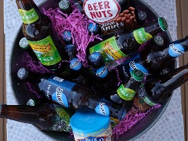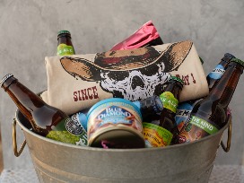 Get the party started with this bold and flavorful basket perfect for beer lovers! Chill out in style with a galvanized beverage tub featuring a fun decal, filled with 24 assorted beers from top craft breweries, including Blue Moon Belgian White, Sierra Nevada Pale Ale, Southern Tier 2XIPA, and The Kind IPA by Three Heads Brewing. Pair your brew with tasty snacks like Beer Nuts and Blue Diamond Almonds for the ultimate flavor combo. Top it off with a rugged Cowboy Skull XL T-shirt, adding a rebellious flair to your laid-back vibes. Whether you're hosting game night, hanging by the firepit, or gifting a brew enthusiast, this basket delivers refreshment, attitude, and fun in every sip!