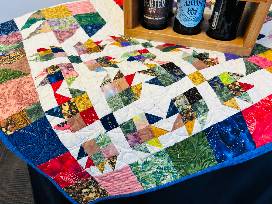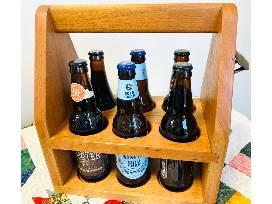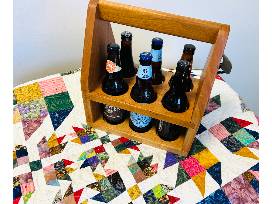Enjoy bringing your craft beer in handmade wooden carrier with bottle opener and handmade quilt.