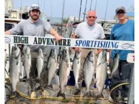 Join Captain Troy Creasy on board the High Adventure for a 6-hour fishing charter on Lake Ontario in May or June