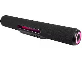Bluetooth speaker includes FM radio tuner, wire antenna, color-changing light effects, and a carry handle