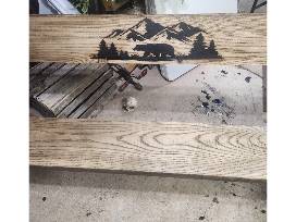 Enjoy this beautiful Leopold Bench made from wood from Camp Woodland with a dark stain finish
