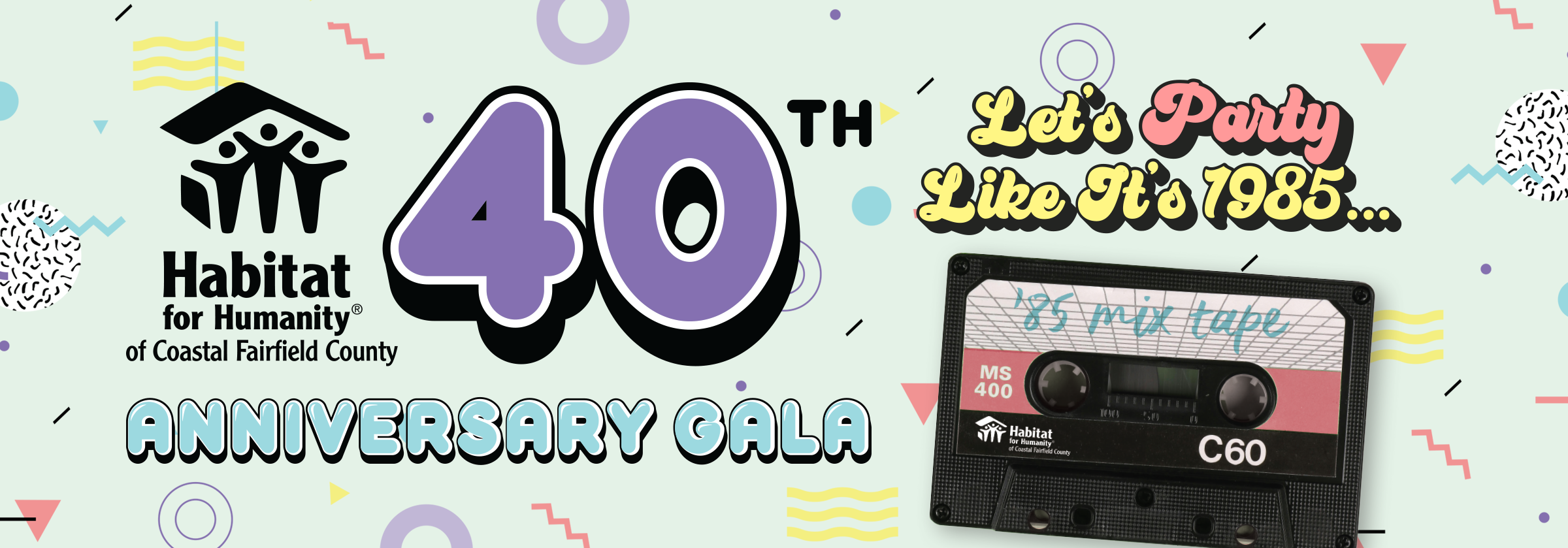 On Saturday, April 26, 2025, Habitat CFC's 40th Anniversary Gala Fundraiser will be celebrated in style with a 1980s-themed Gala at the Hyatt Regency Greenwich in Old Greenwich, CT. Since 1985 we have been partnering with families to create strength, stability, and self-reliance through homeownership. We hope you will consider attending or supporting our 40th Anniversary Gala. Your participation helps us continue to do our important work.