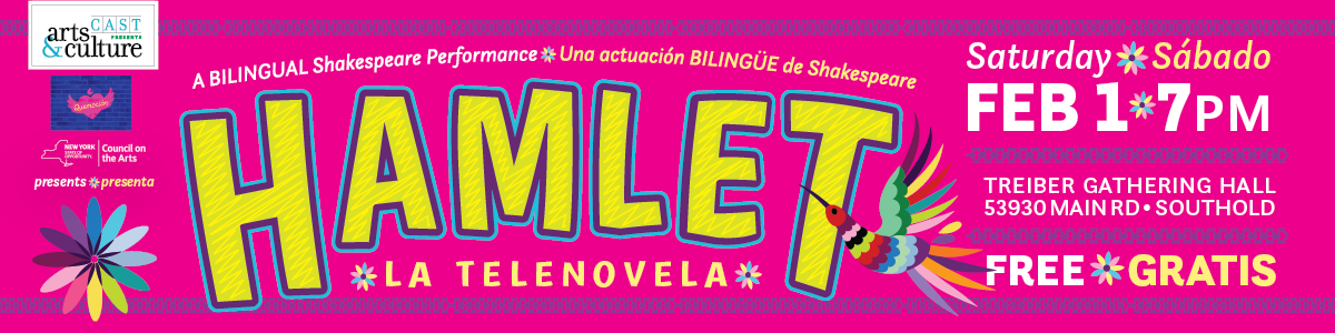 Hamlet La Telenovela, a Hispanic comedic update to Shakespeare's Hamlet, brings new life to the classic. It was originally produced for Frigid NY by Something From Abroad y Quemoción. The bilingual production offers an opportunity for both English and Spanish speakers to enjoy a theater performance, bringing our diverse community members together.