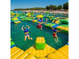 Enjoy a Family 4 Pack Single Splash Tickets to the WhoaZone at Whihala Beach. Located in Whiting, Indiana, just across the Illinois border, come for a full day of family fun. Set on a beautiful white beach with a sandy shore along Lake Michigan, the WhoaZone is an action packed floating obstacle course, complete with shaded seating rentals, and a snack zone!