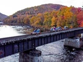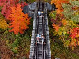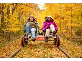 Experience the thrill of a 2-hour, 7-mile railbike adventure for four through Hadley, NY - just a short drive from Saratoga Springs, this scenic ride features breathtaking views of the Sacandaga River.