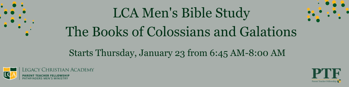 Men of LCA - you are invited to join us for the Spring 2025 Men's Bible Study, sponsored by