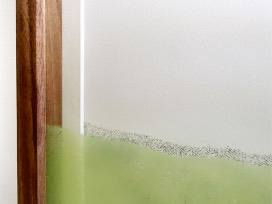 This piece explores landscape through layering and framing. A print on the inside of the acrylic glass floats above a print on paper, aligning and misaligning as the viewer moves. Many native grasslands in the Bay Area have been overtaken by introduced grasses which arrived during European colonization. The grass in this print is verdant green with seasonal rains, but highly flammable during fire season and drought.