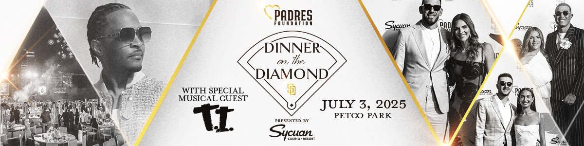VIEW ITEMSThe Fourth Annual Dinner on the Diamond, presented by Sycuan Casino Resort, is set for Thursday, July 3, 2025, at Petco Park.