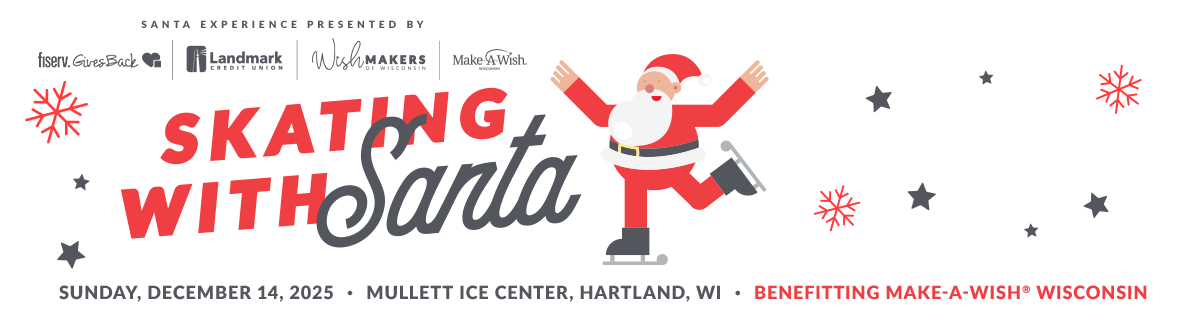 Wishmakers of Wisconsin is hosting the 5th Annual Skating with Santa, presented by Fiserv and Landmark Credit Union, at the Mullet Ice Center in Hartland.