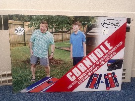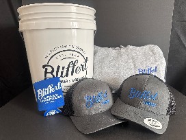 Score big with this Bliffert bucket filled with 2 baseball caps, 4 matching Bliffert t-shirts (M-XXL), and a Boaball cornhole game complete with a carrying bag-perfect for indoor or outdoor fun!