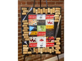 5 - $5 Five Guys Gift Cards, 2 - $ 10 Washington St. Coffee Gift Cards , $50 Flanders Fish Market, $100 Tony D's Gift Card, $100 Fat Tuna, $50 Flanders Donuts, $10 Smoothie King, $5 Simply Ivy's, $10 Starbucks, $100 Angies