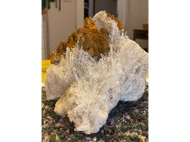 1From the mountains of Brazil this crystal specimen in its natural form has terminated crystals on top and on the bottom of this beautiful piece. Found with the attached iron oxidation gives this collector's item a rustic look. Purchased for $10,000