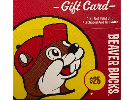 This Buc-ee's Beaver Bucks $25 Gift Card is perfect for every highway traveler who needs gas pumps or electric vehicle stations, Beaver Nuggets, and "World Famous Jerky".