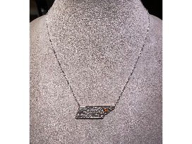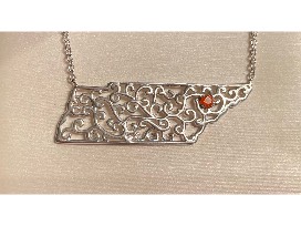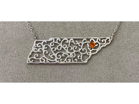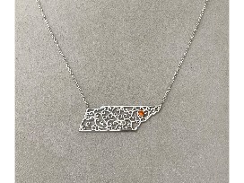 This 35 mm Tennessee state-shaped pendant features a rare 2mm round Fire Opal, set right at Knoxville - home of the unbeatable Tennessee Volunteers.