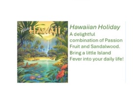 - Hawaiian-Hawaiian Holiday is a delightful combination of Passion Fruit and Sandalwood. Bring a little Island Fever into your daily life!