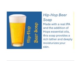 - Beer-Hip-Hop Beer Soap is made with real IP and the addition of Hops essential oils. This soap provides a rich lather and deeply moisturizes your skin.