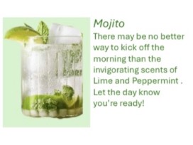 - Mojito-There may be no better way to kick off the morning than the invigorating scents of Lime and Peppermint. Let the day know you're ready!
