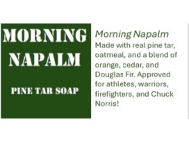 - Pine Tar-Morning Napalm is made with real pine tar, oatmeal, and a blend of orange, cedar, and Douglas Fir. Approved for athletes, warriors, firefighters, and Chuck Norris!