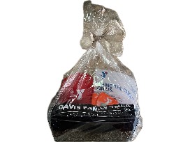 This vibrant auction basket features a rectangular plastic bin filled with YMCA-branded goodies, beautifully wrapped in cellophane and topped with a decorative bow. Inside, you'll find a stylish YMCA baseball cap, a comfortable t-shirt, two handy drink koozies, a small container of bandaids for life's little mishaps, and a practical key ring. But the true star of this donation is the centerpiece: a generous 3-month household membership to the YMCA, offering access to fitness, fun, and community for the whole family.