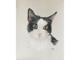 She prefers to take the photos used for reference herself for accuracy of colors and character, but if the pet has sadly passed, she can work from provided photos - always using the highest quality pastels and colored pencils.