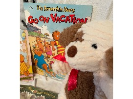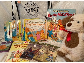This Big Backpack of Books is a bundle that will delight any young reader! The WPRP stadium-approved clear drawstring backpack is filled with soft-cover favorites including 13 Berenstain Bears books, 2 Magic Tree House books, and 1 Amelia Bedelia book, a deck of Dinosaur flash cards, and a lovable, snuggly stuffed dog.