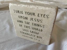 - A decorative stone with an uplifting verse from the book of Colossians.