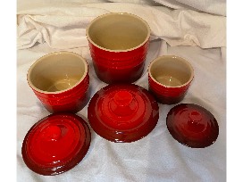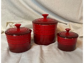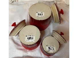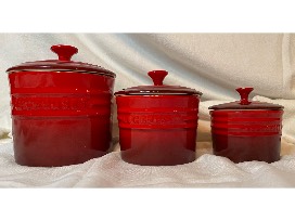 Crafted from premium stoneware in the iconic Cerise (cherry red) finish, this set includes three graduated jars - small (7 oz), medium (14 oz), and large (28 oz) - each featuring tight-fitting lids with silicone seals to keep your spices, herbs, and pantry essentials fresh for longer.