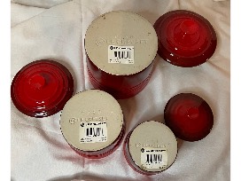 Le Creuset 3 Jar Spice Set with matching lids in gorgeous cerise (cherry red) will brighten any kitchen.