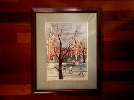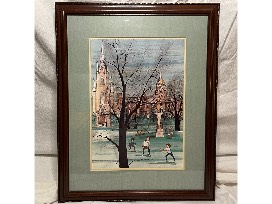 Presented in a professionally crafted 20x25 inch wooden frame with elegant matting, this piece is read to grace any home or office. Known as 'The People's Artist' for her accessible yet evocative works, Moss brings a unique perspective to this beloved scene.