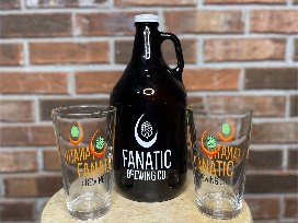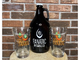 This package includes a sleek, empty Fanatic Brewing branded growler (64 oz), perfect for showcasing your beer passion, alongside two stylish branded beer glasses-ideal for sharing a cold one with a friend. The real kicker? A certificate for one free growler fill of your choice from Fanatic Brewing Company's lineup of darn tasty brews, crafted by German-trained Brewmaster Marty Velas in Knoxville, Tennessee.