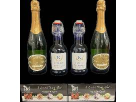 0Indulge in a luxurious dining experience with (2) $100 Chef by Request Gift Certificates, perfect for an elegant catered meal. Complement the occasion with two bottles of Pierre Delize Blanc de Blancs sparkling wine from France, adding a touch of sophistication to any celebration. Cheers to great taste!