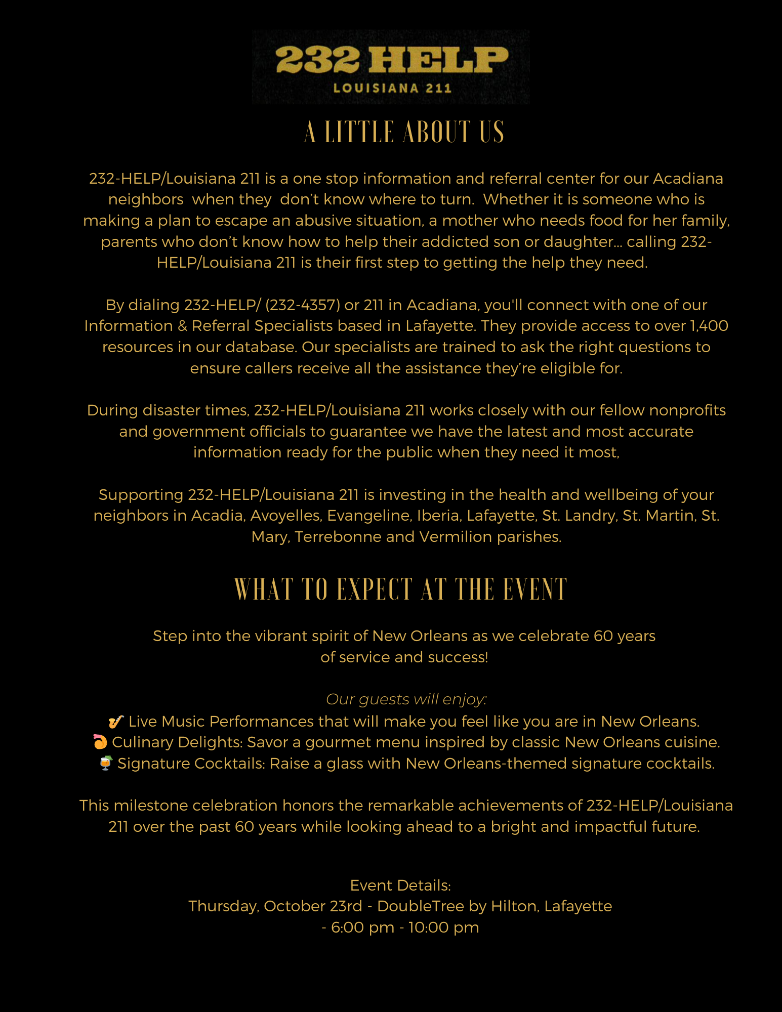 Thanks to you, Acadiana, our 60th Anniversary Gala is SOLD OUT!