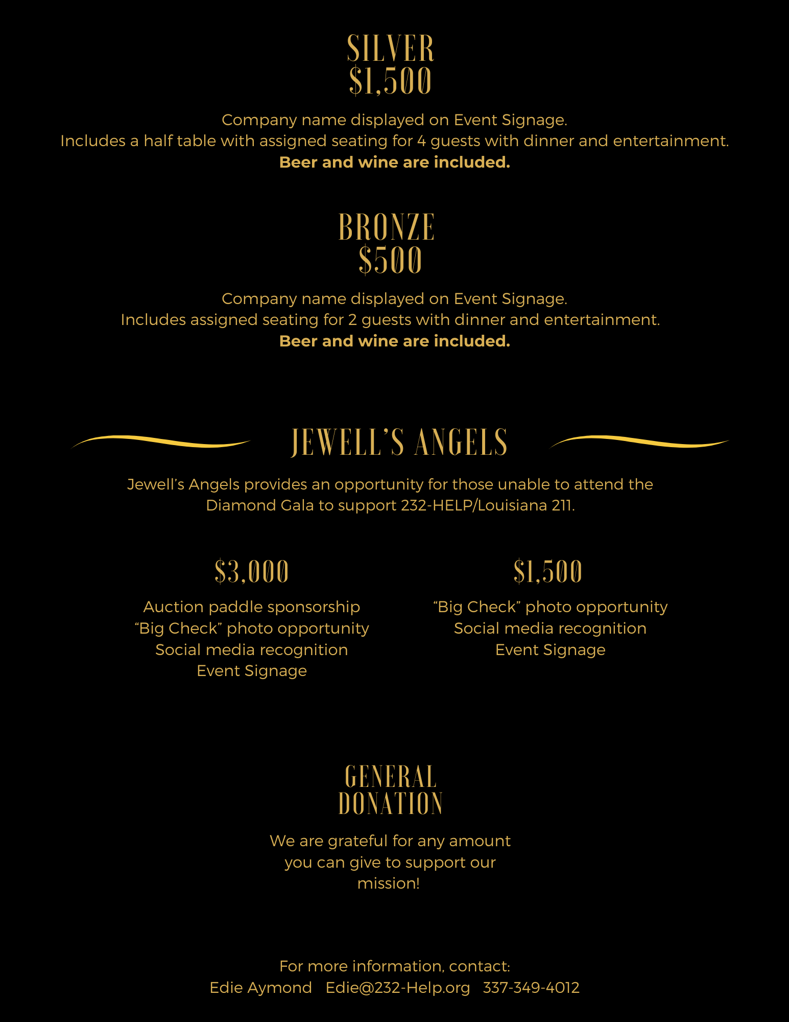 - 7:00pm - Dinner is served and program begins. We are thrilled to honor our 2025 Jewell P. Lowe Humanitarian Award Winner, Ema Haq, as well as our very first Trailblazer Award winner, Emile Myers.