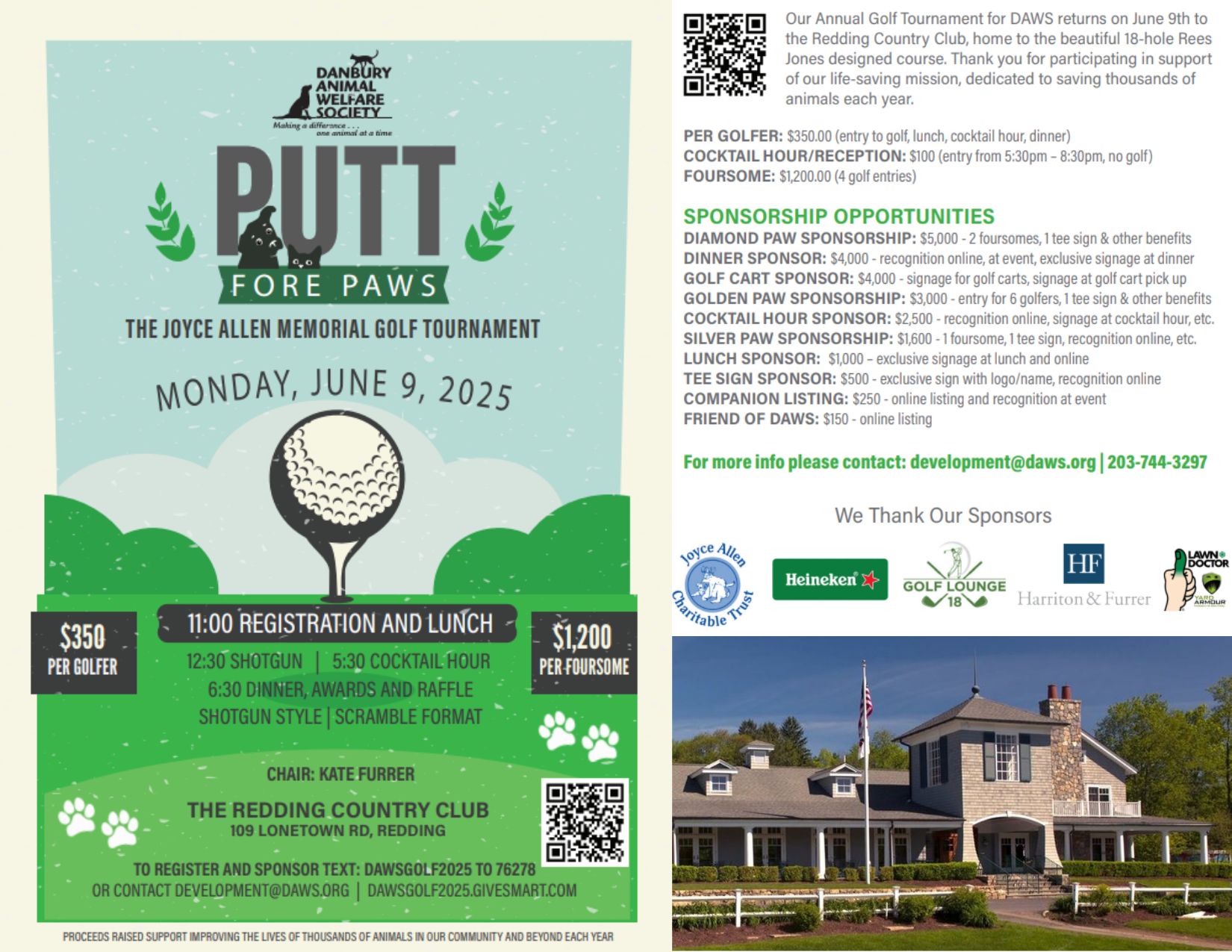Join us for a day of golf and goodwill at the Joyce Allen Memorial Tournament, hosted by the Danbury Animal Welfare Society (DAWS). This event, held at the beautiful Redding Country Club, is a celebration of community, compassion, and the love of the game.