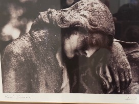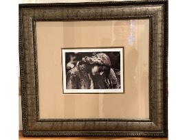 0Beautifully framed and matted B/W photograph of a stone angel resting.